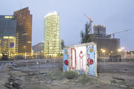 Un tronçon du mur de Berlin se tient encore au milieu de la Potsdamer Platz. PHOTO GETTY