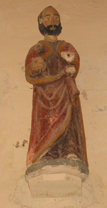Statue de Saint-Pierre-aux-liens (posée sur un piédestal fixé au mur du côté gauche du choeur), le saint patron de l'église du Mont Sabot, porteur d'une clef à la main droite. |