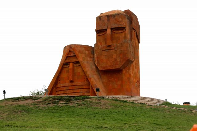 Monument symbolique de l’Artsakh appelé populairement “Grand-Père et Grand-Mère”. Le nom complet donné par son auteur à l’époque soviétique était “Nous sommes nos montagnes”.